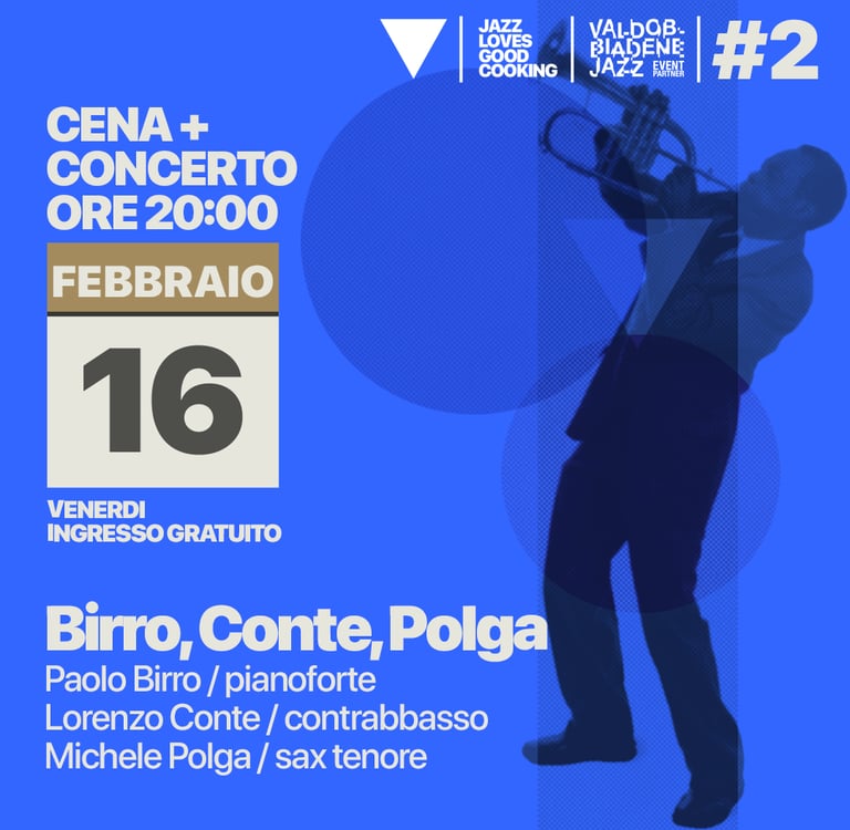 V, con la sua atmosfera intima e raccolta, sarà la cornice perfetta per il grande trio Birro, Conte e Polga. Le note avvolgenti del jazz si diffonderanno nell'aria, creando un'esperienza unica e coinvolgente.