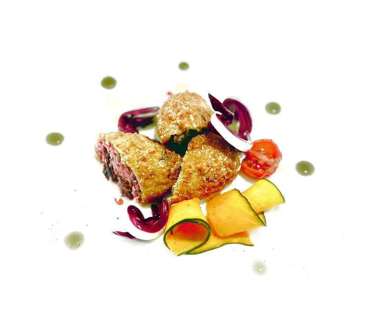 Polpette di Radicchio di Treviso IGP su fonduta di formaggio delle nostre malghe